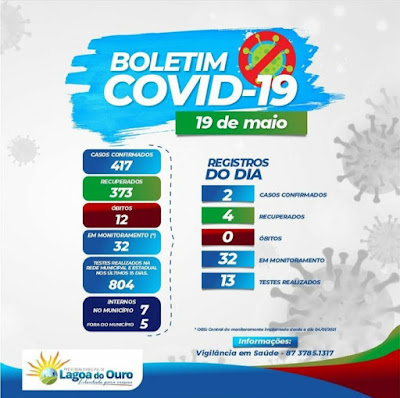 COVID-19, divulgado pela Prefeitura, o município de Lagoa do Ouro já computava