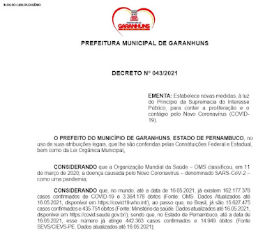 Garanhuns, 19 de maio de 2021.