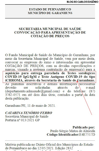 Garanhuns está convocando empresas do ramo e interessadas em apresentar Cotação