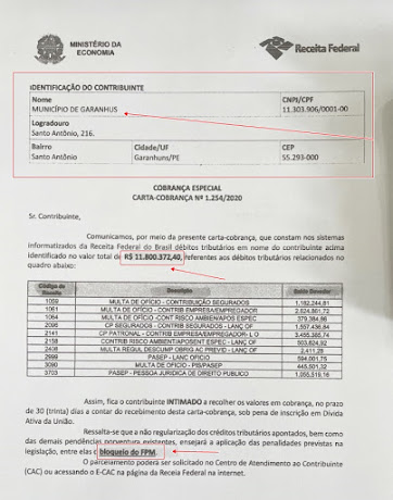 Prefeitura de Garanhuns recebeu uma nova cobrança referente a dívidas da
