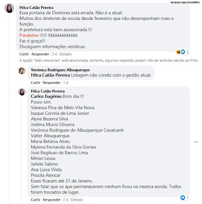 neste Blog, inclusive em nossas redes sociais, sendo contestada pela professora Hilca Catão Pereira, que registrou: