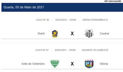 Central, na Arena de Pernambuco, e Sete de Setembro x Vitória, no Gigante do