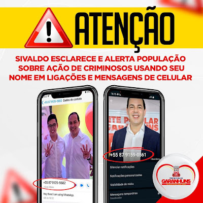 com Albino, os números utilizados nas fraudes são os seguintes: (87) 99159-0561