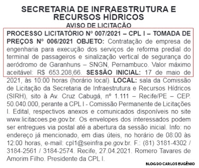 de licitação para recuperação do terminal de passageiros; implantação de cerca
