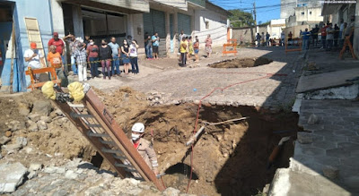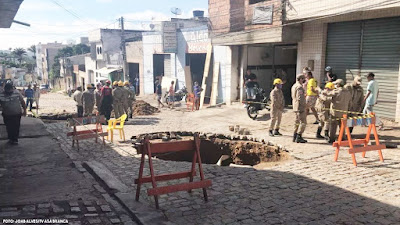 não suportou as fortes chuvas, cedeu e criou a cratera. A Prefeitura já