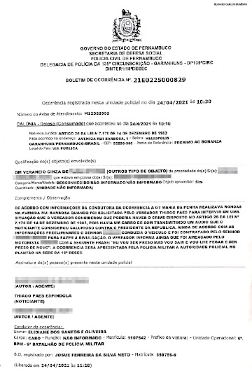 na difusão do material, segundo o Parlamentar Garanhuense ficou apreendido.