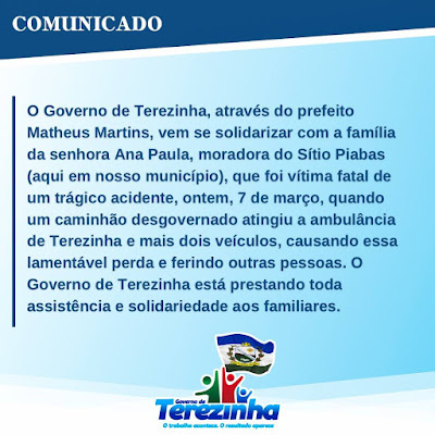 como Ana Paula, que residia no Sítio Piabas, no município de Terezinha, que