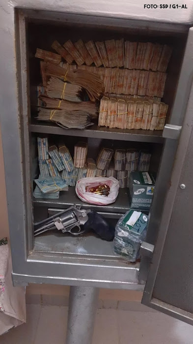 | Dinheiro foi encontrado dentro de cofre na cidade de Arapiraca, Alagoas — Foto: SSP |