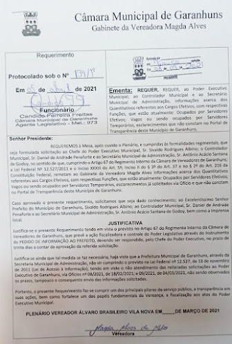 Administração, todavia o Governo de Garanhuns segue descumprindo a Lei de