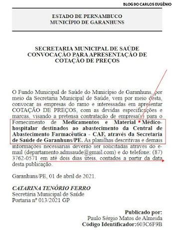 da Secretaria de Saúde, lançou Edital convocando empresas do ramo para
