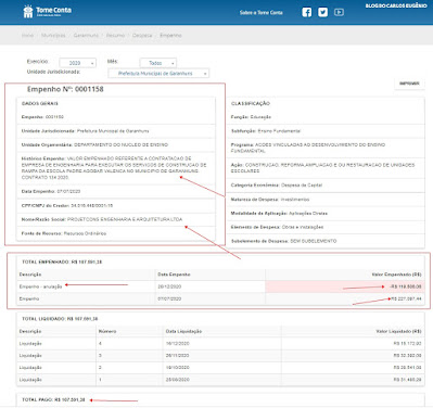 dos R$ 227.097,44 empenhados no dia 7/7/2020, R$ 107.591,38 foram liquidados e