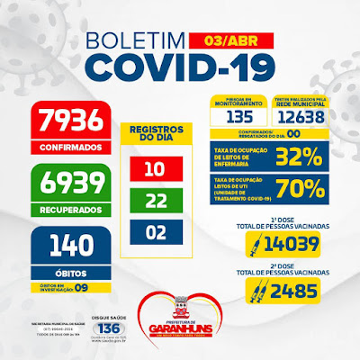 casos da COVID-19 aqui em Garanhuns. Deste total, 140 pessoas vieram a óbito; 6.939
