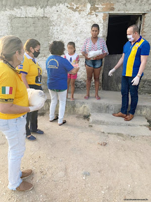 grupo de voluntários do Clube esteve distribuindo Kits de Alimentação junto a