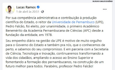 Estadual Lucas Ramos (PSB), em postagem nas redes sociais.