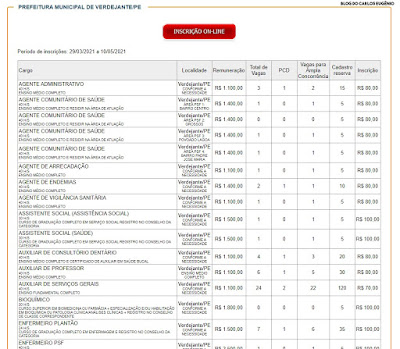 dia 10 de maio, as inscrições para o Concurso Público da Prefeitura de