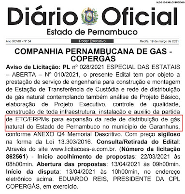 Gás (Copergás) deu mais um passo para trazer o gás natural canalizado até Garanhuns. No próximo dia