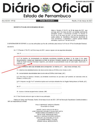 Oficial dos Municípios do Estado de Pernambuco no dia 31/03/2021.