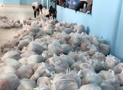 leite de coco. “Para que não houvesse aglomeração, a distribuição dos Kits foi