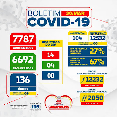 e confirmados para COVID-19. Até ontem, dia 29, o Município somava 136 mortos