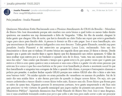 reside no bairro São José. Ela revela a necessidade e reclama da distribuição