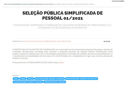 A Prefeitura de Garanhuns, por meio da Secretaria de Educação, disponibilizou as classificações provisórias da Seleção Pública Simplificada para contratação e formação de cadastro de reserva de Professores I e II. Para acessar as listagens basta clicar AQUI.