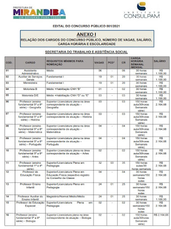 de Apoio Escolar. Os salários vão de R$ 1.500,00 a R$ 2.886,24. Essa