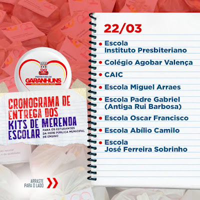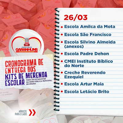 Escolar (PNAE). Clique AQUI e confira a data de entrega dos Kits de Merenda nas Escolas