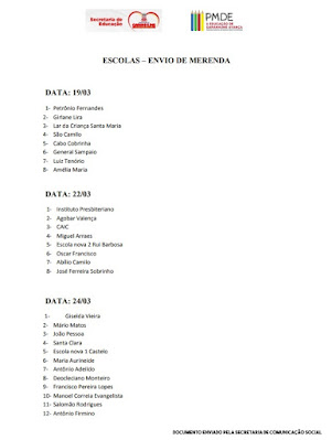 na manhã deste domingo, dia 21, um novo cronograma de entrega dos Kit Merenda nas