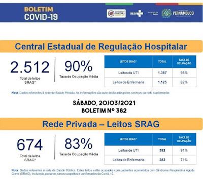 98% na rede pública e de 91% na rede privada. Mesmo com a abertura de, segundo o Estado, 383 novas vagas nos últimos vinte dias, pacientes com COVID-19 ainda aguardam na fila de espera. A meta do Governo Paulo Câmara é instalar outros 200 leitos de UTI nas próximas semanas. (Com