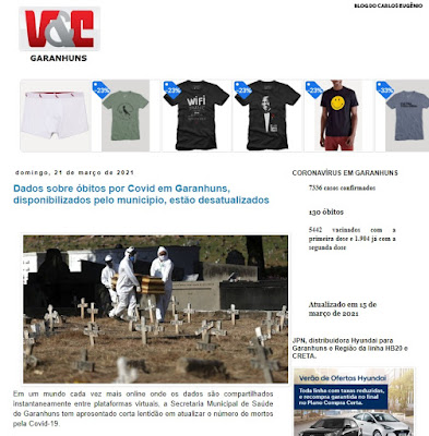 | Números divulgados pelo Portal G1, em 18/03/2021. |
