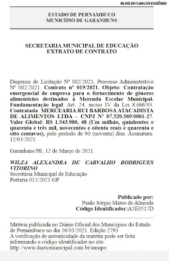 Blog e comentou a ação. “A contratação da Empresa, por dispensa de licitação,