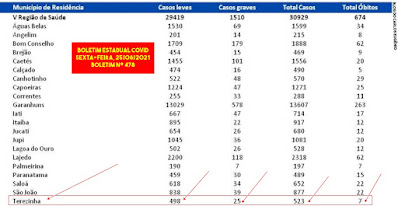 três óbitos por COVID-19 nesta sexta-feira, dia 25, aqui em Garanhuns. Os três