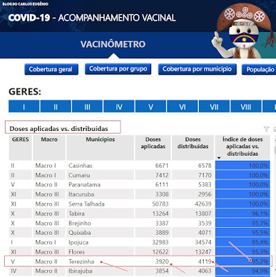 dá um percentual de 95,2% das doses distribuídas/aplicadas, colocando a cidade