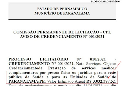 complementares, por pessoa jurídica, para atuar nas Unidades de Saúde daquele