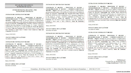 215.434,80). Os contratos assinados pelo secretário de Saúde, Paulo Cabral, têm