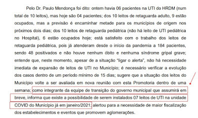 leitos de UTI na Unidade de Tratamento COVID-19) e que estariam sendo tomadas