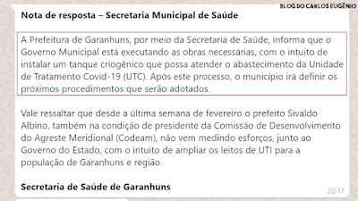de Garanhuns passar a usar os nove respiradores disponíveis, sendo dois deles móveis, e montar leitos de UTI na Unidade localizada na Cohab 2.