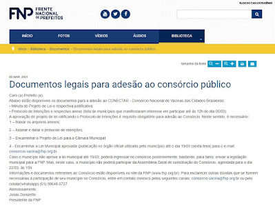 providenciar os documentos para adesão oficial no Consórcio Nacional de Vacinas