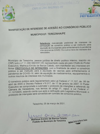 de Saúde, o Governo de São João vem divulgando nas redes sociais a adesão ao Consórcio Nacional para compra de vacinas