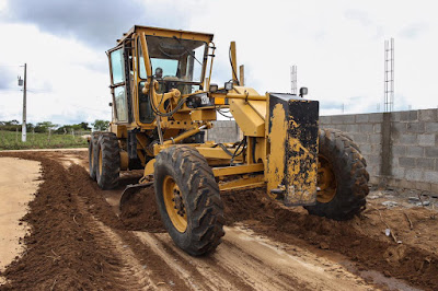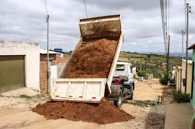 sendo realizados serviços de terraplenagem em ruas sem pavimentação. Segundo a
