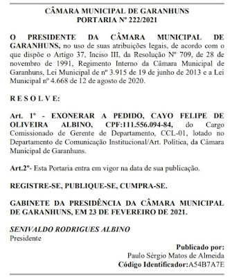 atrás e nomeará Cayo Albino no 2º cargo mais importante da CODEAM.