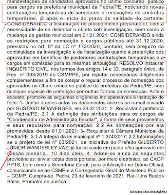 Pedra. O inquérito está publicado no Diário Oficial Eletrônico/MPPE, da última