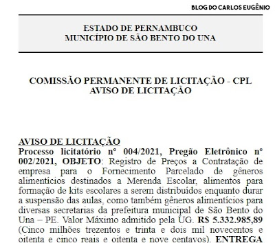 da prefeitura municipal de São Bento do Una – PE. Valor Máximo admitido pela