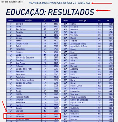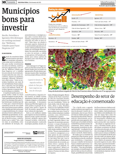ranking nacional das “Melhores Cidades para Fazer Negócio 2.0”. O estudo da