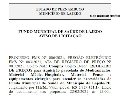 os eventuais processos de licitação para fornecimento de produtos ou serviços
