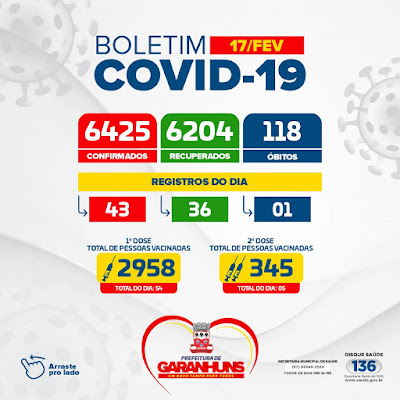 foram confirmados 6.425 casos de COVID-19 no Município. Deste total, 118