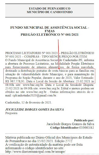 Assistência Social, o Governo de Canhotinho estima investir cerca de um milhão
