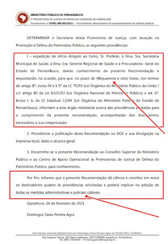através da Secretaria de Saúde, acatou a recomendação do Ministério Público de Pernambuco
