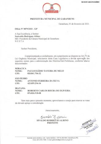 enviou para a Câmara de Vereadores as indicações do Governo Municipal para as