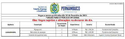 nos perfis solicitados devem se dirigir até a Agência do Trabalho de Garanhuns,